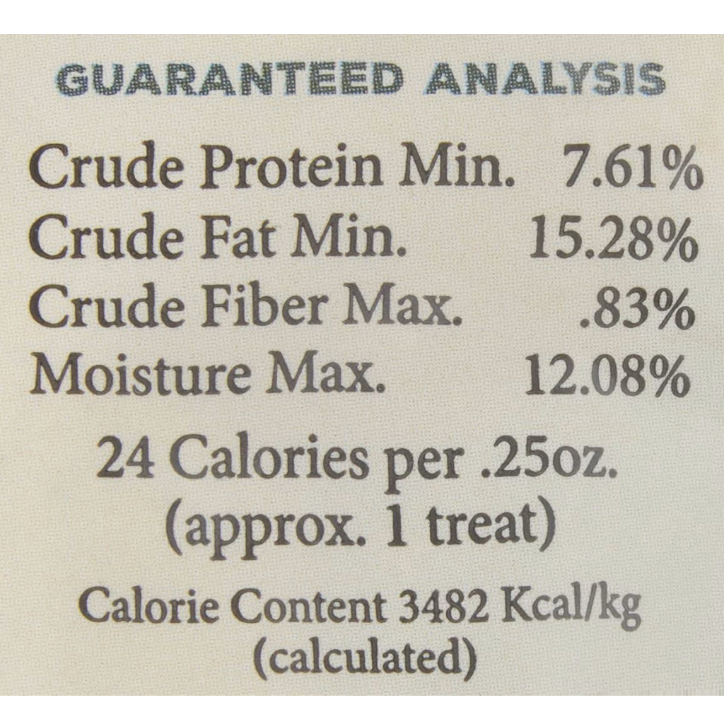 - 3482 Kcal/kg; 24 Calories per 0.25 oz. (approximately 1 treat)