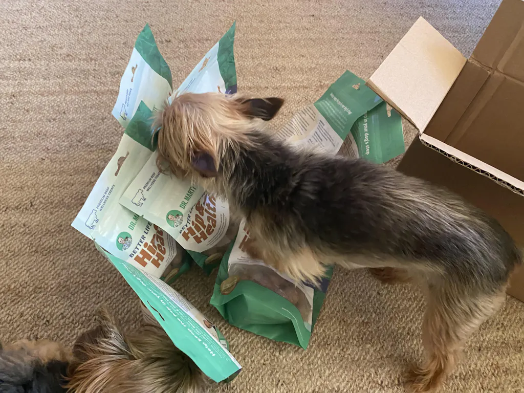 Dr. Marty Better Life Bites Hip & Joint Health Freeze-Dried Dog Treats deliver veterinarian-formulated joint support in convenient, crunchy meatball-shaped bites. Combining premium freeze-dried beef with New Zealand green-lipped mussel, bone broth, and L-carnitine for heart support, these treats target hip and joint mobility while maintaining lean muscle and cardiovascular function. The freeze-drying process preserves maximum nutrients and natural enzymes without artificial preservatives or grains. Supports cartilage health, joint flexibility, youthful energy, and active mobility across all life stages.