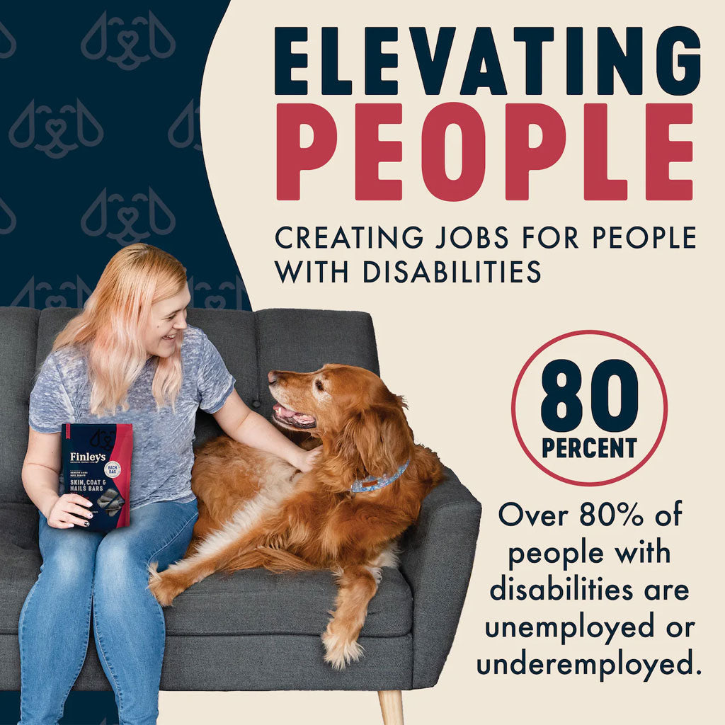 Finley's Barkery Skin, Coat & Nails Bars Dog Treats are skin, coat, and nail healthy dog rewards in salmon and sweet potato flavors. Made from natural ingredients, these bars feature a grain-free formula and are perfect for sensitive-skin or dietary-restricted dogs. High in Omega-3 fatty acids and fiber, these delicious skin, coat, and nail treats keep your pup healthy.