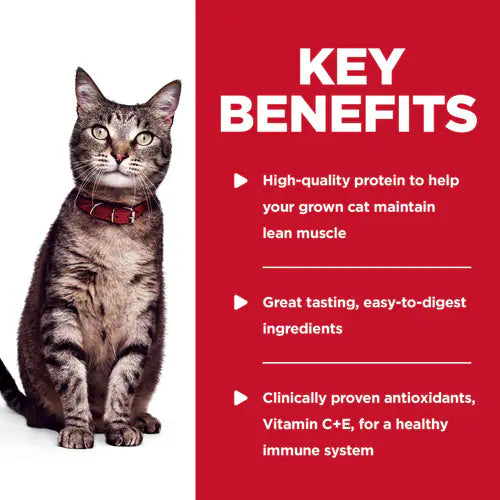 Now Science Diet wet cat food comes in a pouch that’s easy to open and easy to feed. With delicious chunks in a decadent gravy, even the most picky eaters will love this soft and tender cat food. It’s the perfect option for adult cats ages 1-6 who are ready to switch from kitten food. Serve this gourmet daily nutrition as a balanced meal by itself, or try it on top of Science Diet adult dry food.