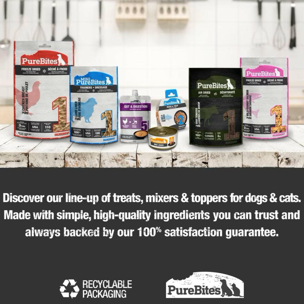 - PureBites Mixers are packaged in recyclable trays, contributing to a brighter tomorrow. And remember, all PureBites treats, food, mixers, and toppers come with our unwavering 100% money-back satisfaction guarantee.