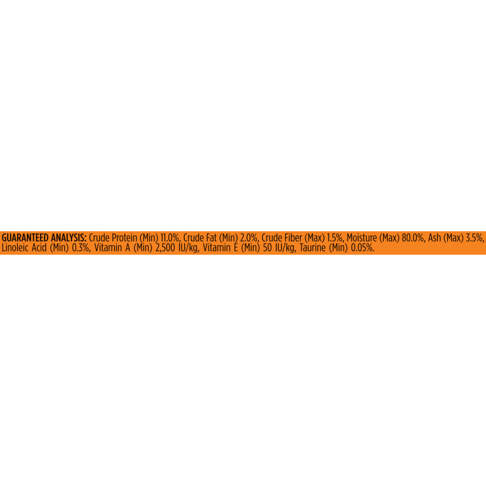 Water Sufficient for Processing, Chicken, Wheat Gluten, Meat By-Products, Liver, Fish, Soy Flour, Corn Starch-Modified, Artificial and Natural Flavors, Salt, Tricalcium Phosphate, Potassium Chloride, Added Color, Taurine, Choline Chloride, Vitamin E Supplement, Thiamine Mononitrate, Zinc Sulfate, Ferrous Sulfate, Niacin, Calcium Pantothenate, Vitamin A Supplement, Menadione Sodium Bisulfite Complex (Source of Vitamin K Activity), Copper Sulfate, Manganese Sulfate, Pyridoxine Hydrochloride, Riboflavin Supplement, Vitamin B-12 Supplement, Biotin, Folic Acid, Vitamin D-3 Supplement, Potassium Iodide. A-4711-5.5.Guaranteed Analysis