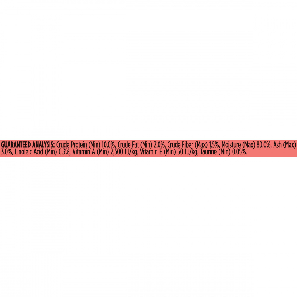 Water sufficient for processing, salmon, wheat gluten, liver, meat by-products, shrimp, rice, corn starch-modified, artificial and natural flavors, chicken, fish, soy flour, salt, tricalcium phosphate, added color, potassium chloride, taurine, choline chloride, Vitamin E supplement, thiamine mononitrate, zinc sulfate, ferrous sulfate, niacin, calcium pantothenate, Vitamin A supplement, menadione sodium bisulfite complex (source of Vitamin K activity), copper sulfate, pyridoxine hydrochloride, manganese sulfate, riboflavin supplement, Vitamin B-12 supplement, biotin, folic acid, Vitamin D-3 supplement, and potassium iodideGuaranteed Analysis