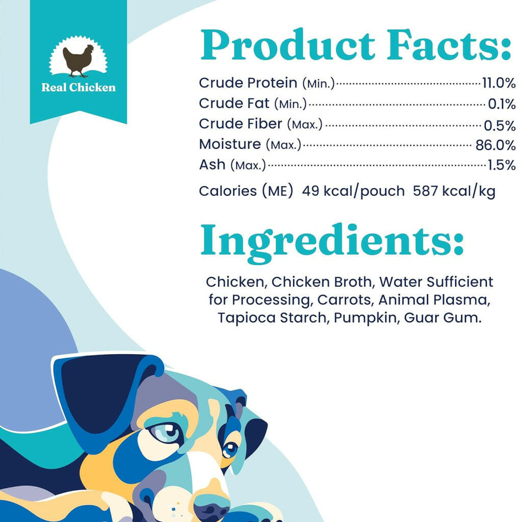 - High-protein recipe features real shredded chicken, pumpkin, and tasty carrots in a delicious broth.