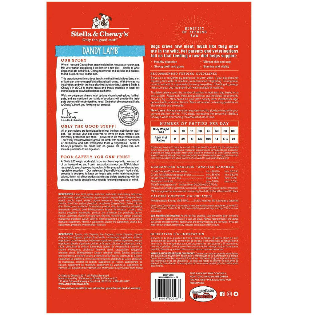 Stella & Chewy's Dandy Lamb Dinner Patties Freeze-Dried Raw Food For Dogs