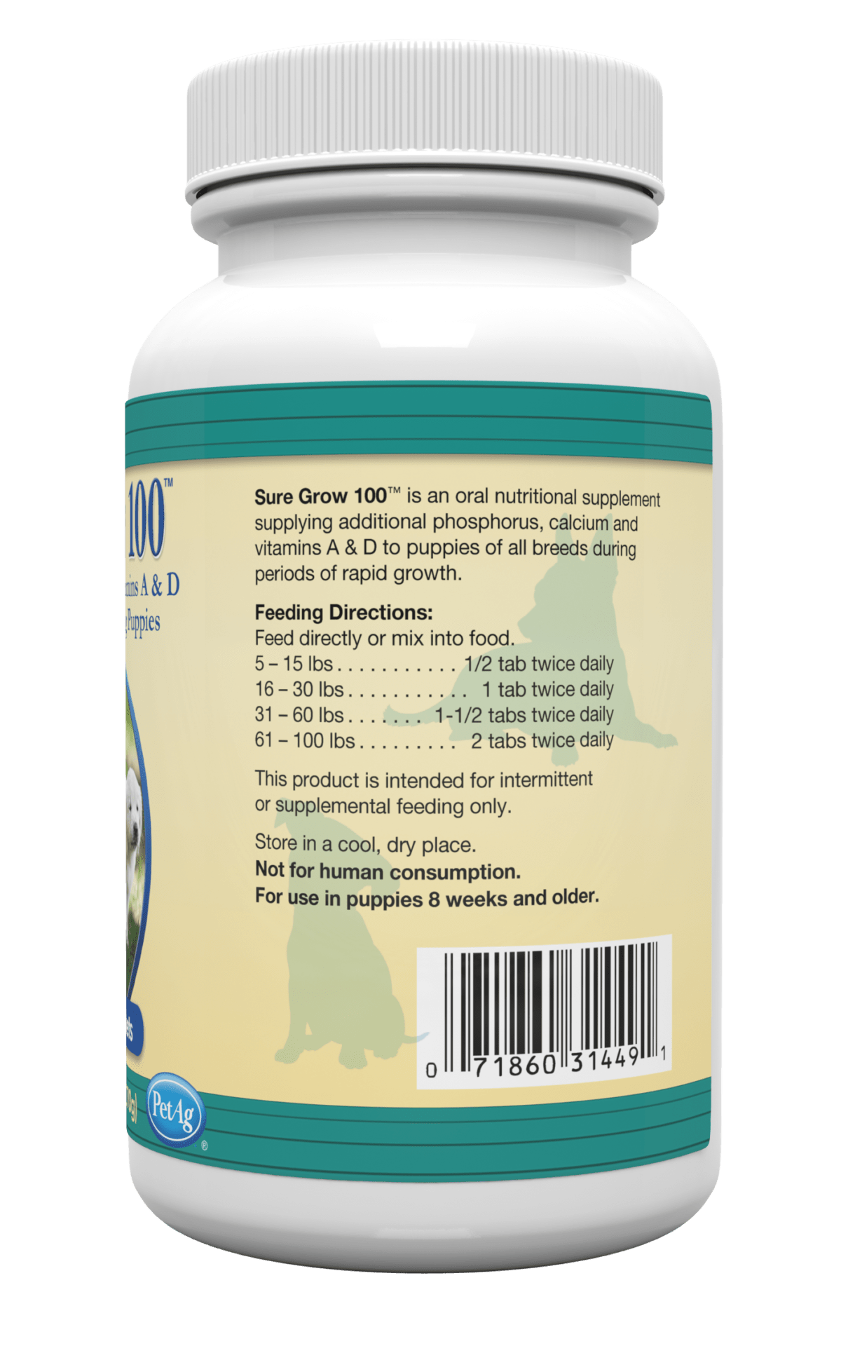 PetAg Sure Grow 100 Supplement for Growing Puppies, 100 chewable tablets