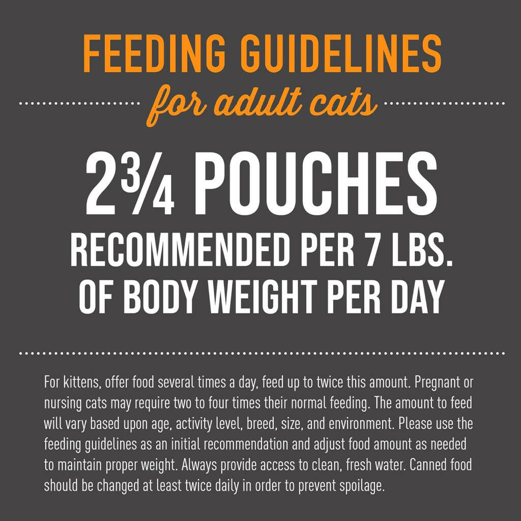 - For adult cats, feed approximately 2 1/2 pouches per day per 7 lbs. of body weight.