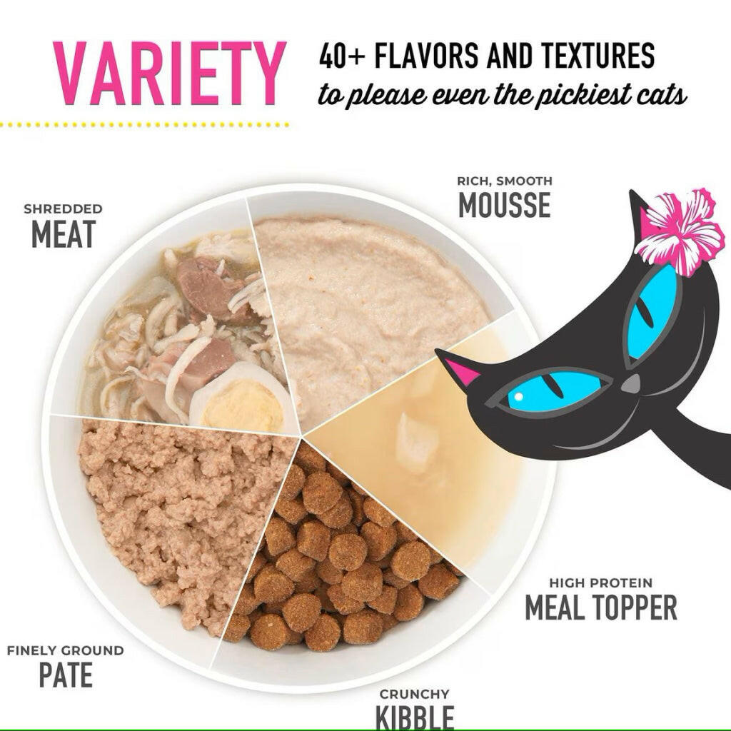 - Luxurious consomme-based formula is great for picky eaters, and contains no grains, gluten, carbohydrates, starches or flours; made with dolphin-safe fish.