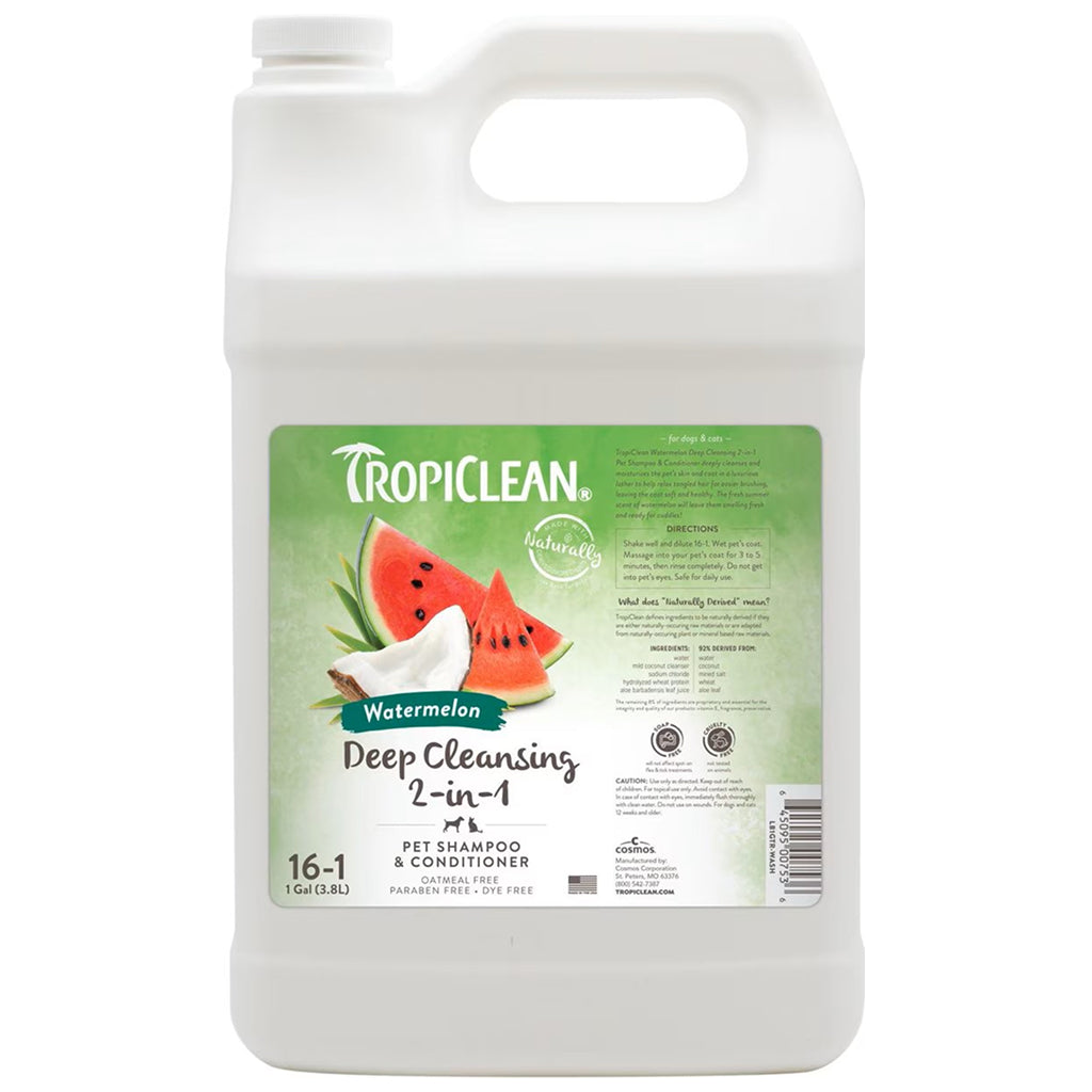 TropiClean Watermelon Refreshing 2-in-1 Pet Shampoo & Conditioner cleans and conditions your pet’s coat in one easy step. With a fruity, fresh scent and naturally derived ingredients, it leaves pets smelling and feeling great. Ideal for dogs and cats, this formula is paraben-free and dye-free, ensuring a safe and gentle wash.