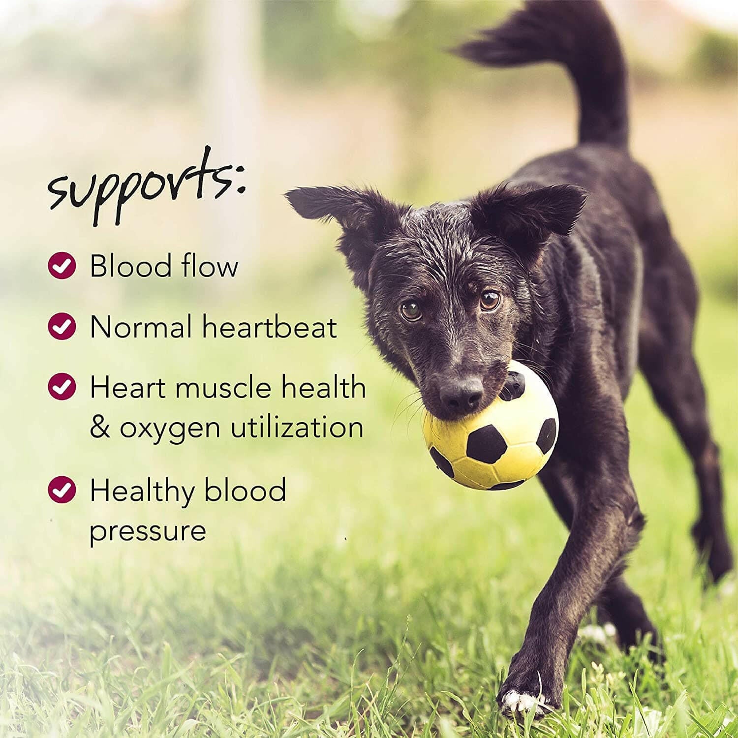 With a veterinary-grade blend of CoQ10, Taurine, L-Carnitine, and Hawthorn Berry, this supplement delivers superior antioxidant protection and supports heart rhythm, blood circulation, and mitochondrial energy production.